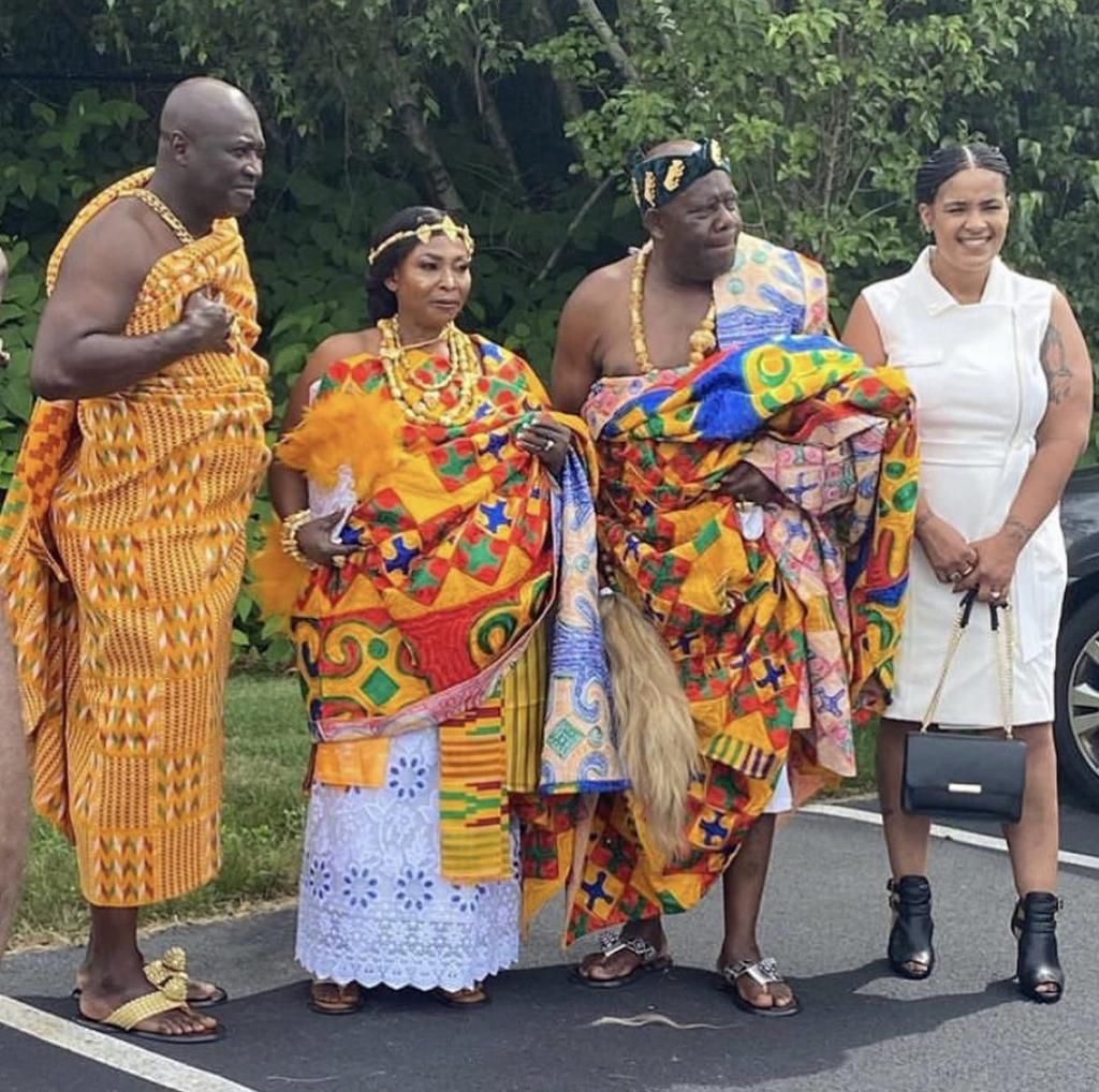 Kyeiwaa and her husband went for wrapped Kente cloth for their traditional wedding depicting the culture of their origin.