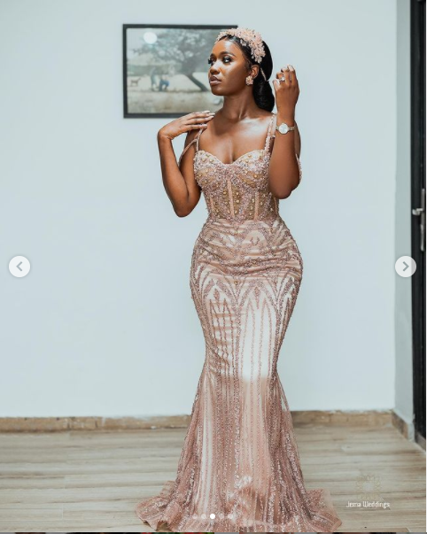 We just love both outfits for her traditional and white wedding