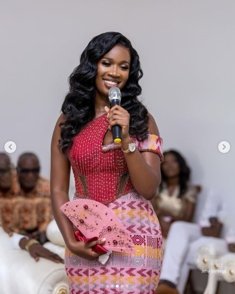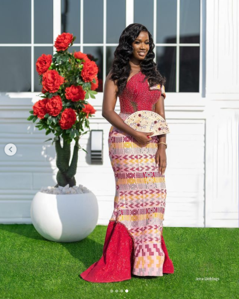 In what we term as simple and classy, the bride won our hearts with her gorgeous Kente apparel for the traditional wedding.