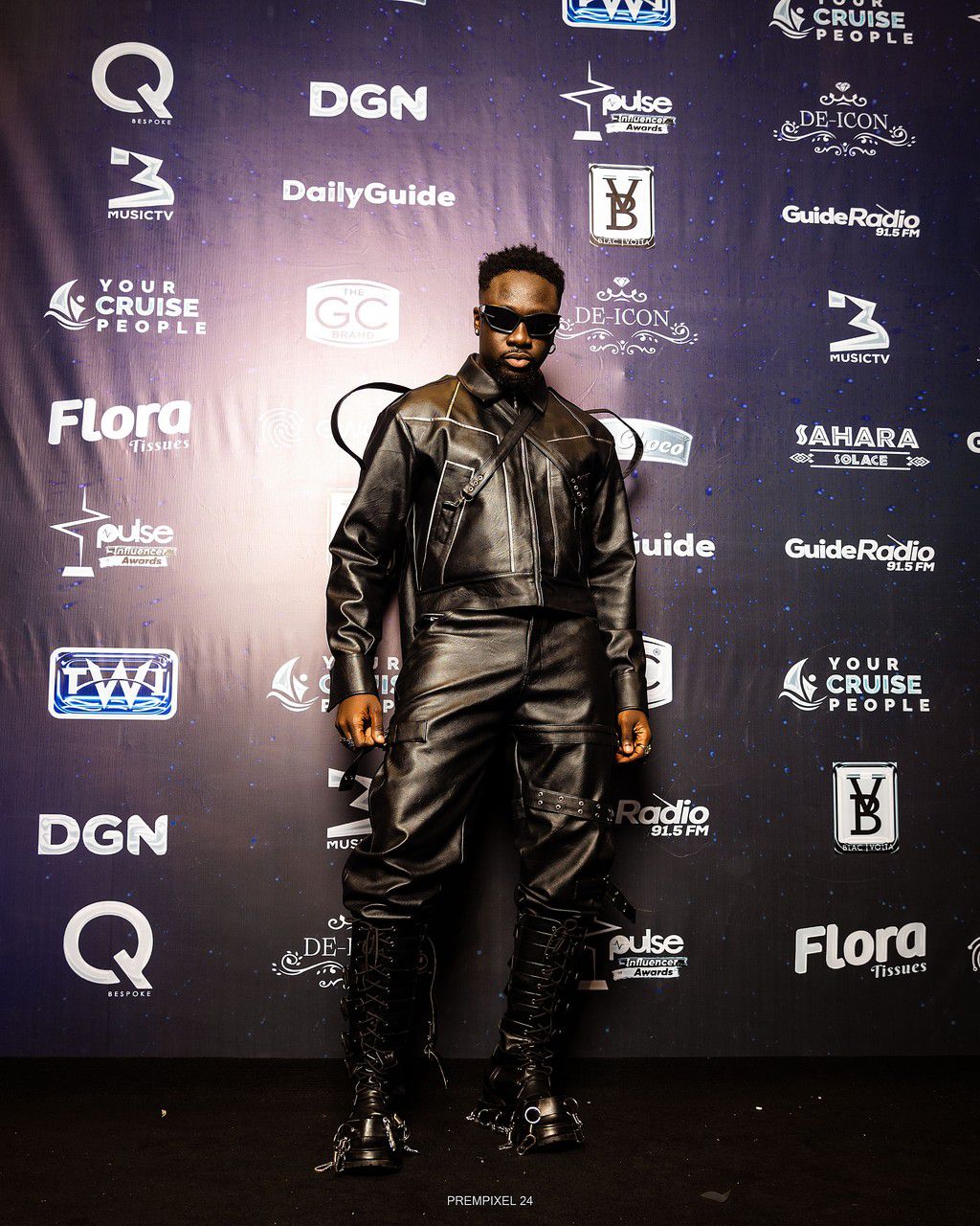In black leather trousers, a vest, and signature sunglasses, Made in Ghana showcased an effortlessly stylish, avant-garde look. This outfit epitomised the bold aesthetic of the night.