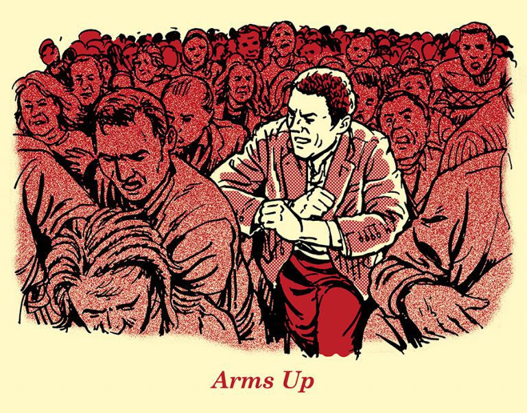 Falling in a stampede is dangerous, but you can reduce harm by curling into the fetal position, covering your head and neck with your arms. Try to get up quickly when there’s a brief lull in movement, using your hands and knees for stability.