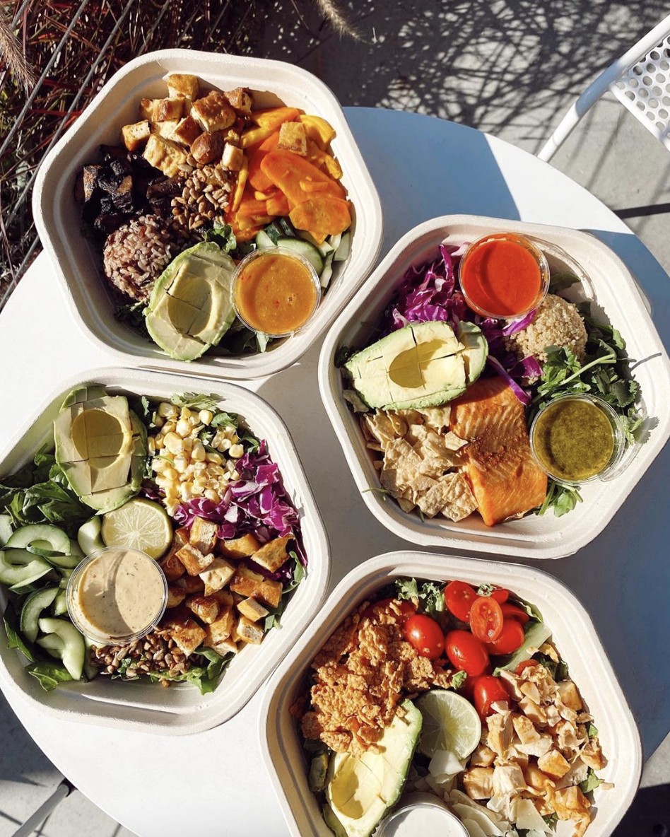 Sweetgreen: Guacamole Greens Salad Ever-growing chain sweetgreen has plenty of good-for-you options to pick from, but dietitian Jenna Appel , RD, CPT, particularly loves the Guacamole Greens Salad. Made with roasted chicken, avocado, tomatoes, and red onions, it's a colorful, nutritious pick (even with the tortilla strips). Per serving : 530 calories, 36 g fat (6 g saturated), 27 g carbs, 1 g sugar, 616 mg sodium, 11 g fiber, 26 g protein Sweetgreen via Instagram
