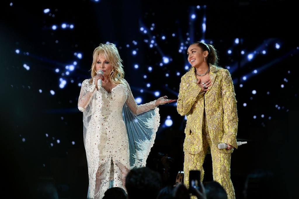 Miley Cyrus and Dolly Parton While these two aren't related by blood, Dolly Parton has been BFFs with Billy Ray Cyrus for years. When Miley was born, he made Dolly her godmother. Aw! Getty Images