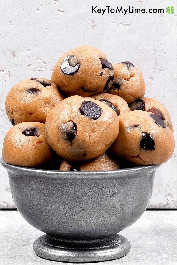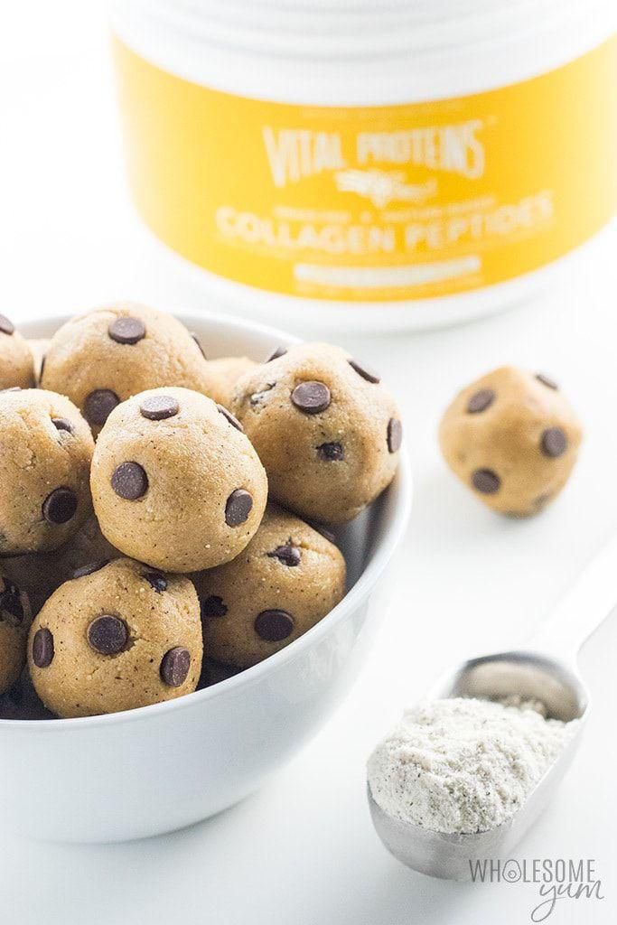 6-Ingredient Cookie Dough Protein Bites Made with coconut flour, these balls taste like raw cookie dough, but are way better for you. GET THE RECIPE Per serving: 115 calories, 7.2 g fat (2.7 g sat), 10.1 g carbs, 3.2 g fiber, 4.8 g sugar, 49.4 mg sodium, 3.4 g protein Key To My Lime