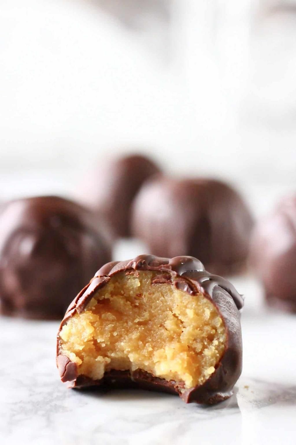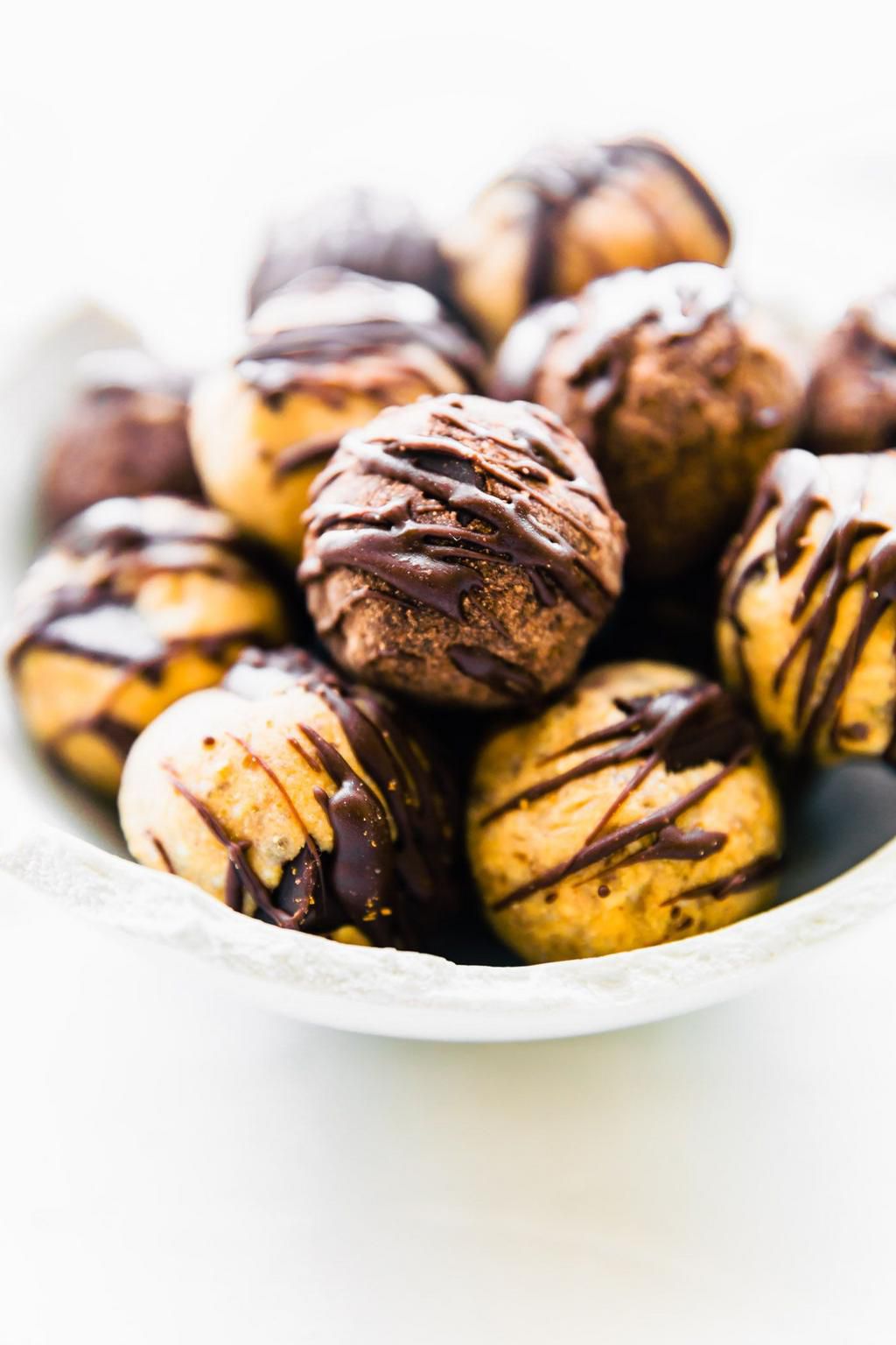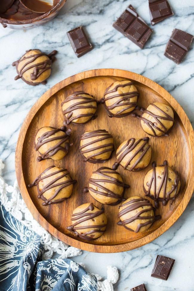 Peanut Butter Cookie Dough Truffles If you're craving dessert, that chocolate drizzle won't disappoint. GET THE RECIPE Per serving: 168 calories, 4 g sat fat, 16 g carbs, 130 mg sodium, 10 g sugar, 3 g fiber, 4 g protein A Saucy Kitchen