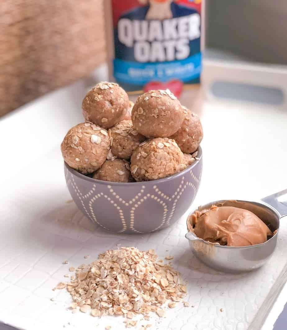 Nut Butter Oat Protein Balls With plenty of chew and nutty flavor, these take just four ingredients to make. GET THE RECIPE Per serving: 68 calories, 3 g fat (1 g sat), 10 g carbs, 27 mg sodium, 4 g sugar, 1 g fiber, 2 g protein Rhian's Recipes