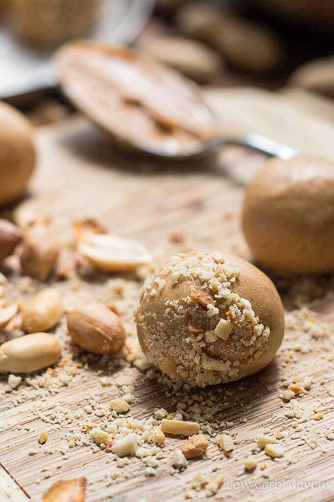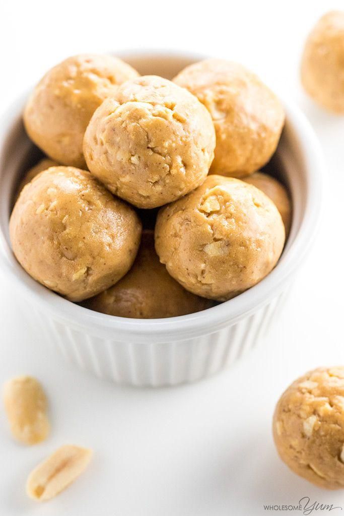 Low-Carb Peanut Butter Balls Add your favorite protein powder to this simple recipe for major PB cookie vibes GET THE RECIPE Per serving: 104 calories, 6 g fat, 2 g carbs, 1 g fiber, 8 g protein Low Carb Maven