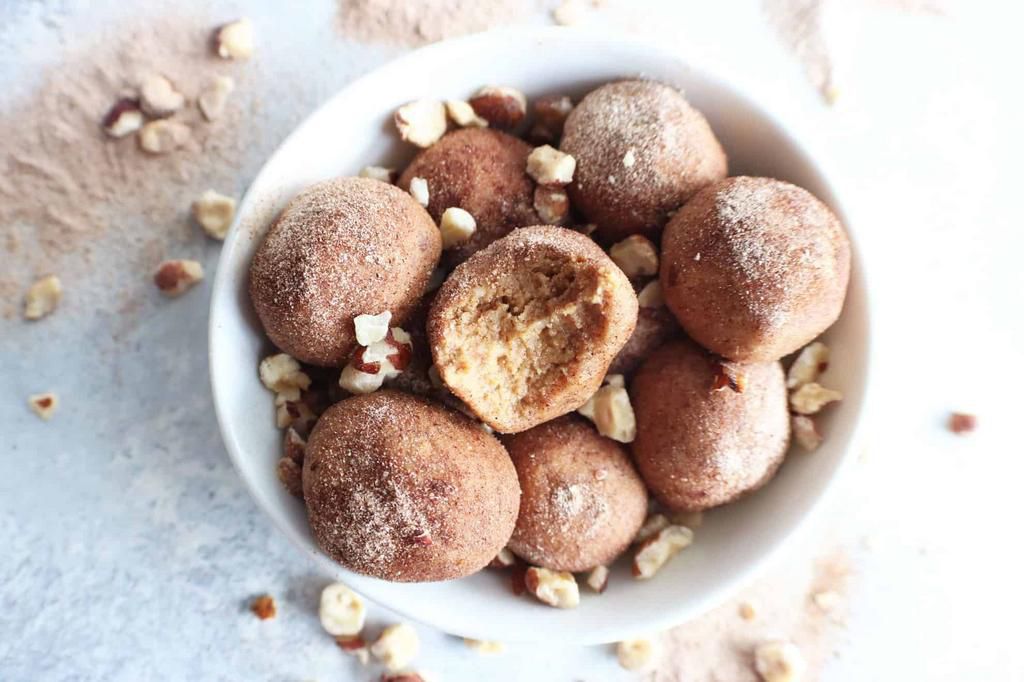 Cinnamon Roll Bliss Balls Craving a Cinnabon? These collagen-packed protein balls satisfy without the sugar crash. GET THE RECIPE Per serving: 159 calories, 11.7 g fat (2.1 g sat), 11.2 g carbs, 90 mg sodium, 1.7 g fiber, 3.7 g protein The Toasted Pine Nut