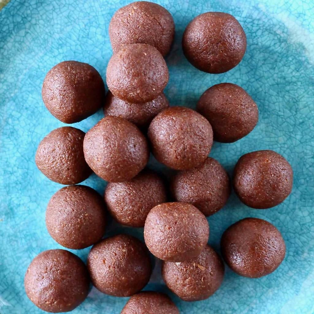Basic Vegan Protein Balls When you just need simple, make these. (Add protein powder for extra oomph.) GET THE RECIPE Per serving: 86 calories, 5.1 g fat, 7.9 g carbs, 47.6 mg sodium, 3.6 g sugar, 1.4 g fiber, 2.6 g protein One Lovely Life
