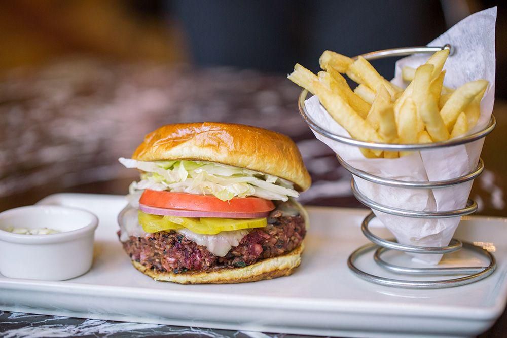 Impossible Burger The Impossible Burger is popping up in restaurants and fast food chains all over the country these days (hello, Impossible Whopper ). And now, this meatless patty has found its way to the Cheesecake Factory menu. To make it completely vegan, ask for no melted cheese and ask for a vegan bun. Per serving (including cheese and bun): 1,010 calories, 57 g fat (22 g sat), 2320mg sodium, 82g carbs, 10g fiber, 14g sugar, 42g protein Cheesecake Factory