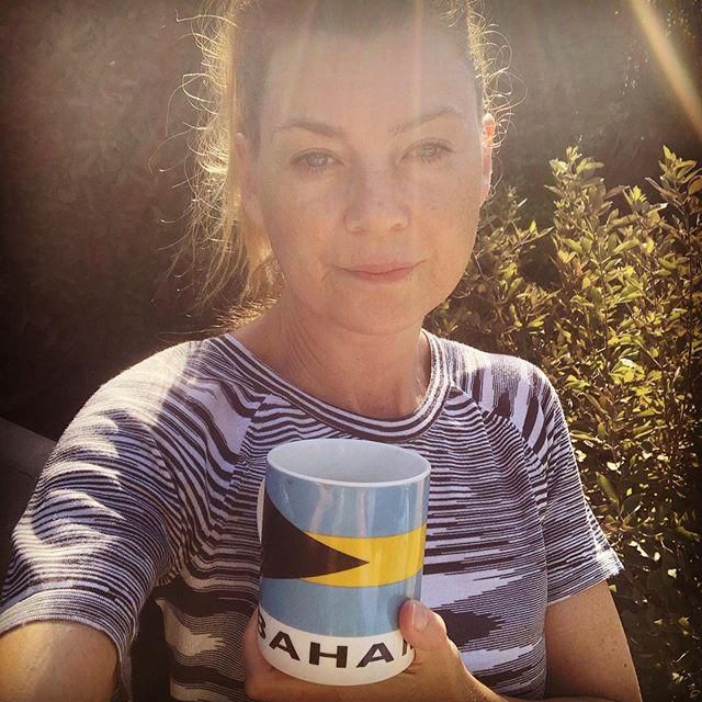 2) September 2019 Pompeo is serving major sunshine in this pic. She's holding up a 'Bahamas' mug to show support for those impacted by Hurriance Dorian in 2019. See the original post on Instagram ellenpompeo@Instagram
