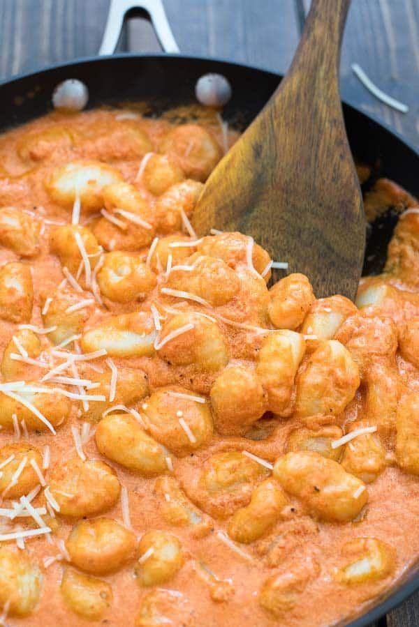 Creamy Garlic Parmesan Gnocchi Want something simple with a side of cheese? This quick dish is like adult mac. GET THE RECIPE Per serving (using potato gnocchi): 468 calories, 20 g fat (8 g sat), 759 mg sodium, 64 g carbs, 4 g fiber, 9 g protein Rasa Malaysia