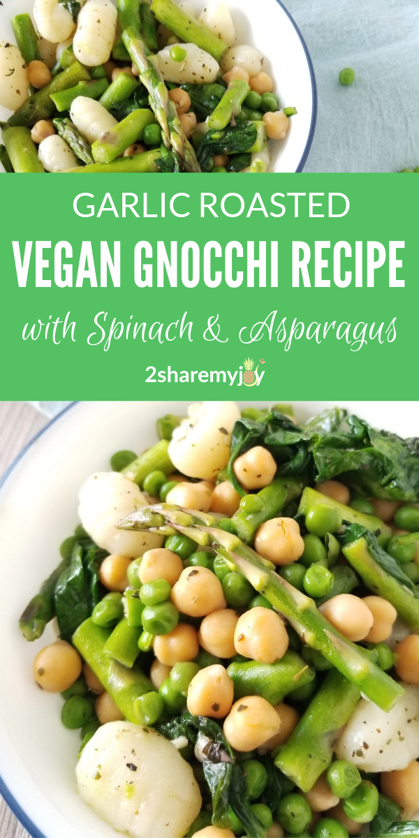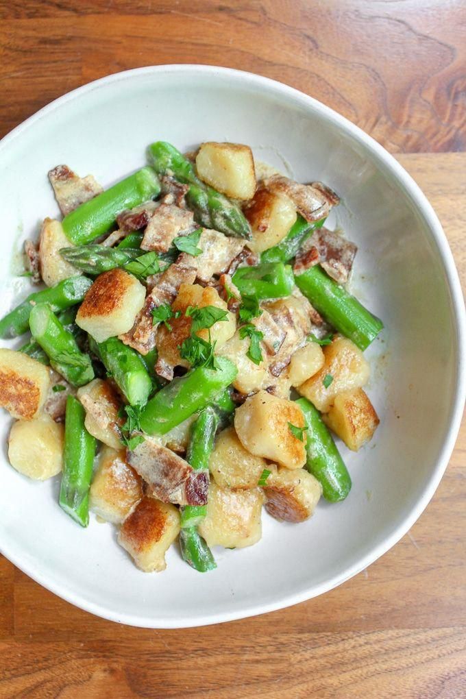 Italian Asparagus & Spinach Gnocchi Come springtime, whip out a bag of cauliflower gnocchi and make this fresh-flavored recipe, pronto. GET THE RECIPE Per serving (using potato gnocchi): 415.5 calories, 19.2 g fat (6 g sat), 526.9 mg sodium, 50.1 g carbs, 9.5 g sugar, 11.7 g fiber, 14.3 g protein 2 Share My Joy