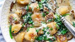 Cauliflower Gnocchi in Asiago Mushroom & Spinach Sauce If you like mushroom risotto, this mushroom gnocchi is about to rock your world. GET THE RECIPE Per serving: 461 calories, 22 g fat (13 g sat), 255 mg sodium, 92 g carbs, 5 g sugar, 5 g fiber, 23 g protein Kevin Lynch