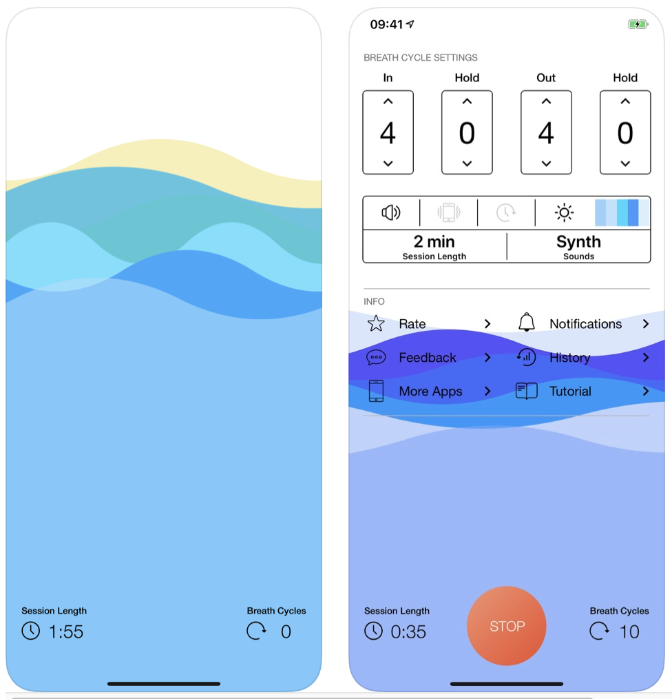5) Breathe+ This app is similar to Paced Breathing, but for iPhone users. With this app, you can practice deep inhales and exhales to calm yourself down when youre anxious or panicked. The app is free. Courtesy