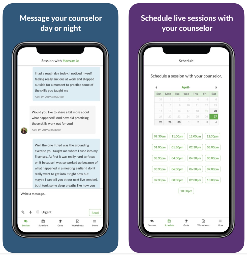 12) BetterHelp Like TalkSpace, BetterHelp connects you virtually with a licensed therapist. Therapy plans on this app start at $40 per week. The app is available on the App Store or Play Store. Courtesy