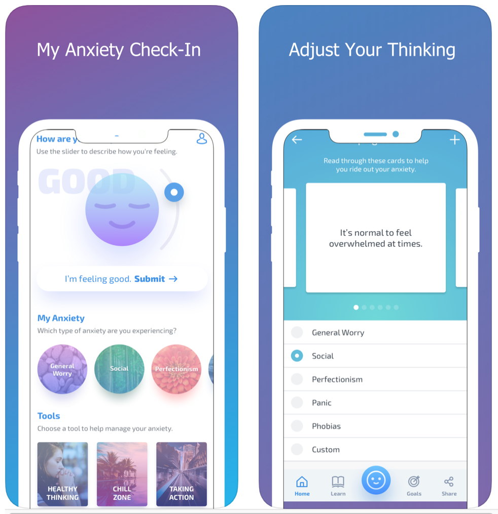 9) MindShift CBT This app was developed by Anxiety Canada Association and is designed specifically for teens and young adults who have anxiety. The app helps you face intense emotions and learn how to rethink living with anxiety. Its free in the App Store and Play Store. Courtesy