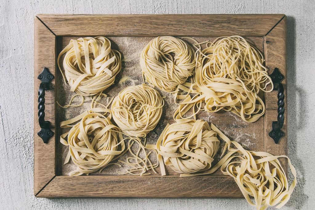8) Semolina Flour Made from refined durum wheat, semolina flour is very high in protein (gluten), which creates density and chew," says Prag. "Its most commonly used in box pasta to create that al dente texture signature of well-cooked pasta. Besides pasta, its also used to make dense, hearty semolina bread. Per cup: 150 calories, 0.5 g fat (0 g sat), 0 mg sodium, 31 g carbs, 1 g sugar, 2 g fiber, 5 g protein Natasha Breen - Getty Images