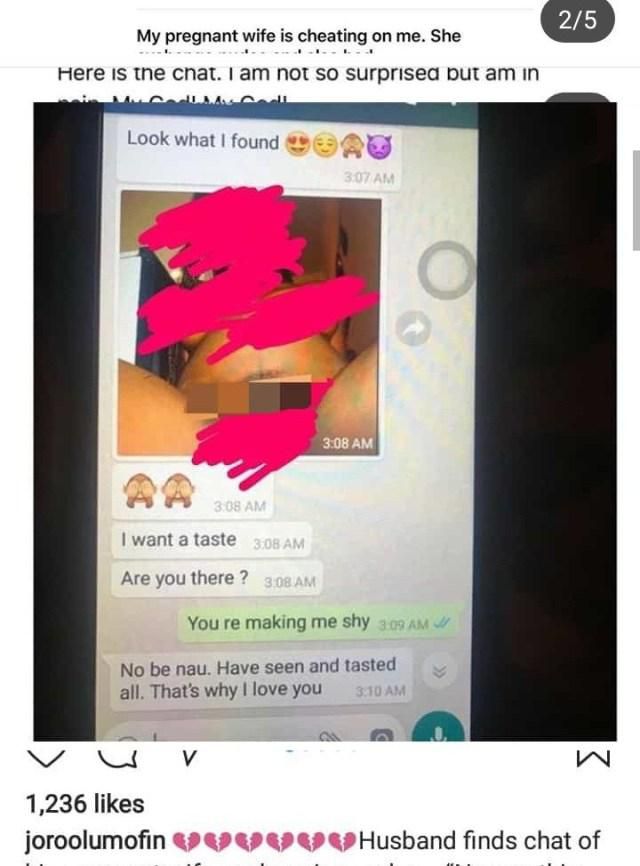 The unnamed man has written to online relationship expert, Joro Olumofin, narrating how he’s found a heart-breaking WhatsApp conversations between his pregnant wife and her illicit lover.
