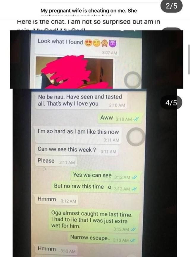 Man discovers nightmarish WhatsApp chats between heavily pregnant wife and illicit lover