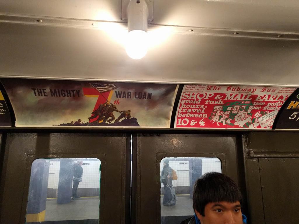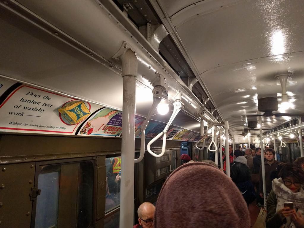 Despite the subway car being from the 1930s, advertisements in this car started erring toward the 1960s: