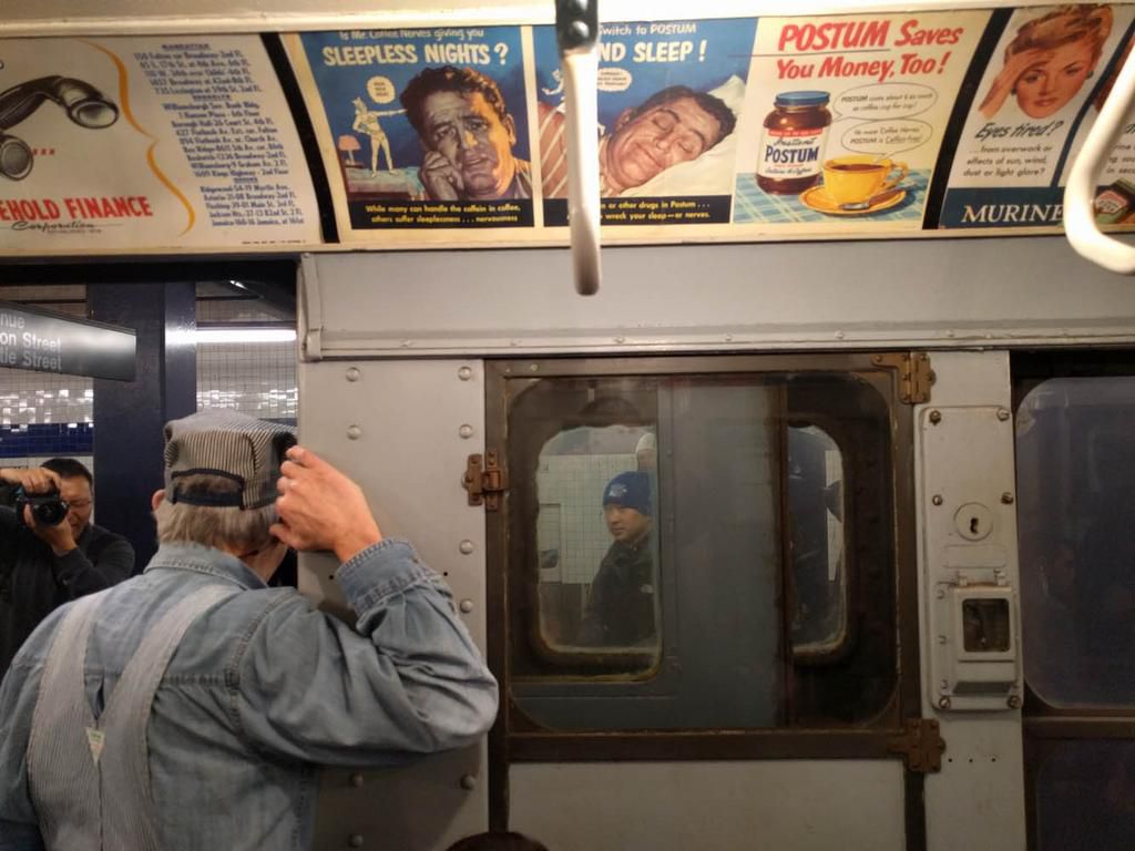 There's no running to the train given that no one's using the vintage subway line like an actual subway line. Subways in New York don't usually stand in a station for longer than a minute or two, but this one stops to pose for photos for at least a few minutes.