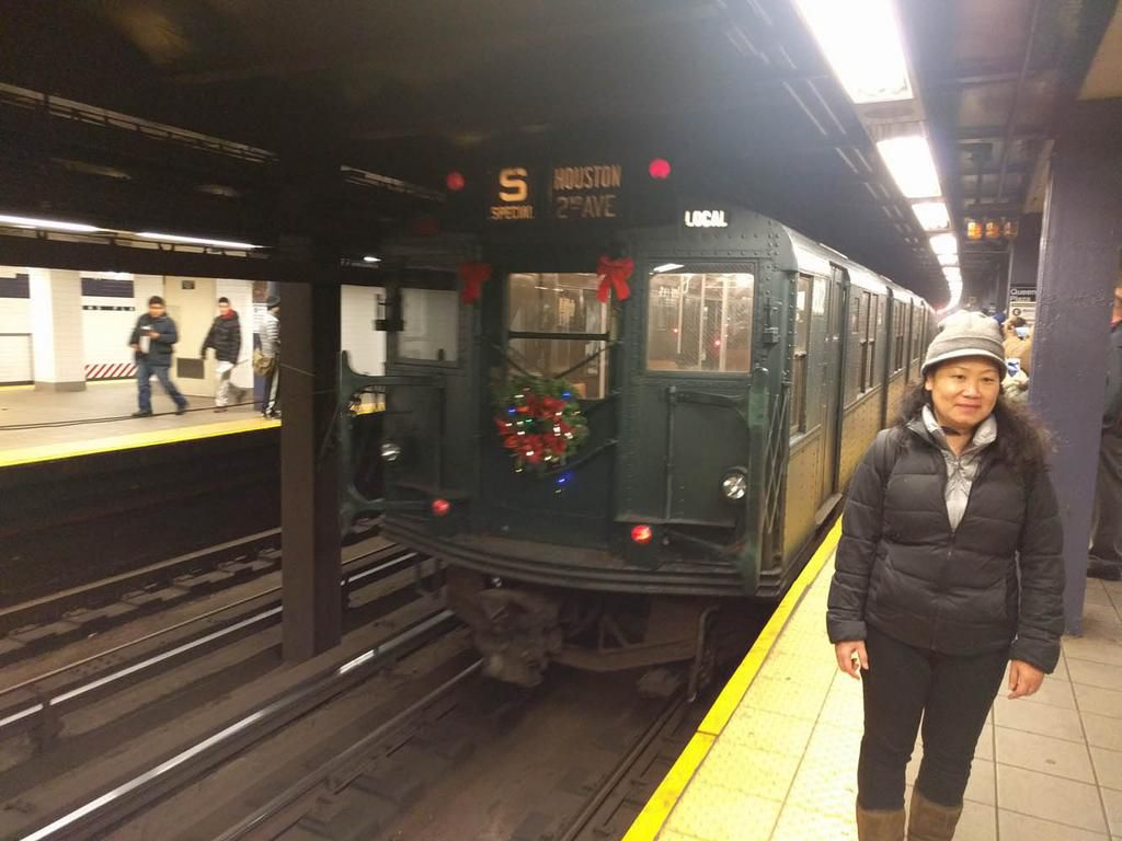 We arrived at the Queens Plaza stop not long after boarding at Second Avenue in Manhattan. Heres the Shoppers Special antique train line as it rides away, with one of the many passengers posing for a final pic: