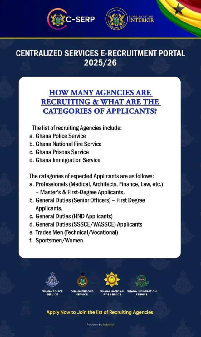 The 2025 recruitment process represents a significant shift towards a more efficient and transparent system for Ghana’s internal security services. By centralising applications and enforcing strict digital verification, the Ministry of the Interior aims to ensure fairness and equal opportunity for all eligible applicants.