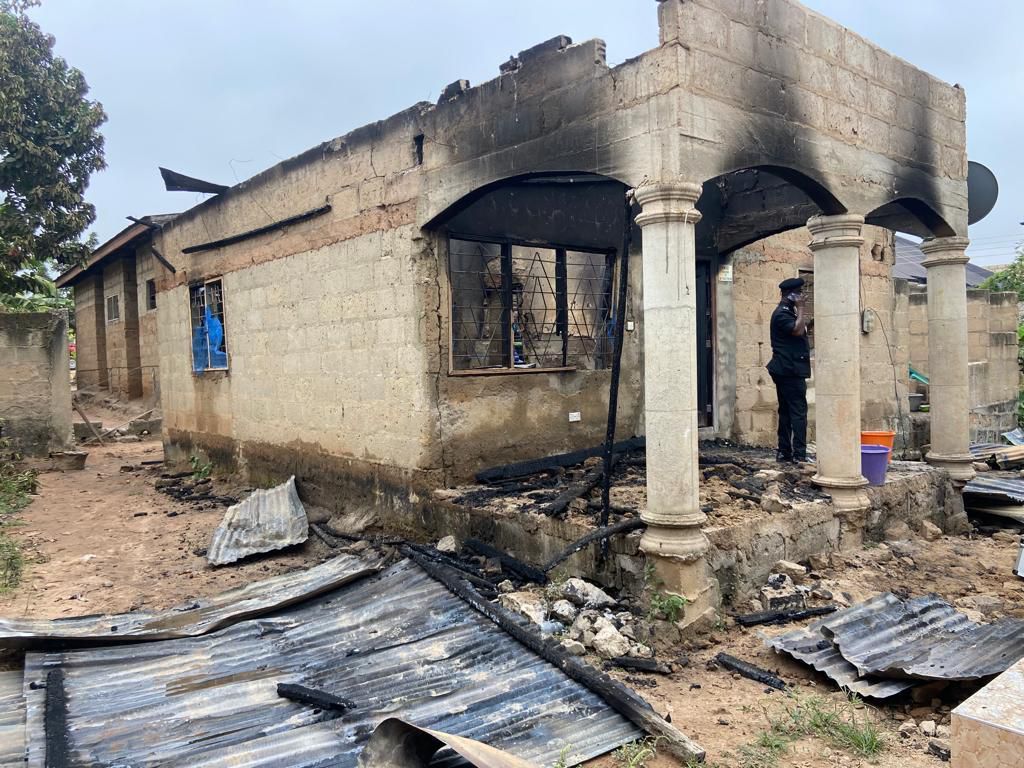 Reports say the house in question was completely consumed by the fire, but officers from the Ghana National Fire Service managed to prevent it from spreading to neighbouring houses.