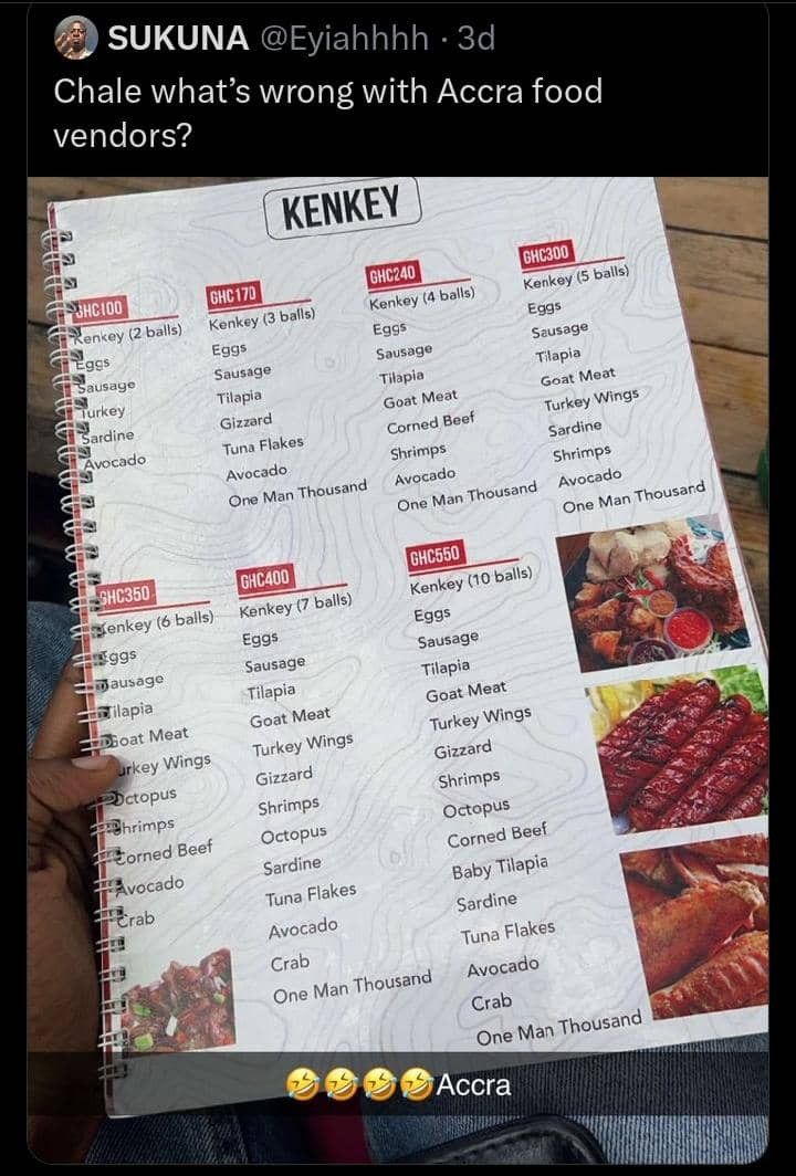 X user @Eyiahhhh shared the photo with the caption, "Chale what’s wrong with Accra food vendors?", and it quickly went viral.