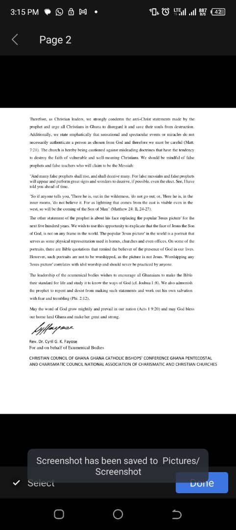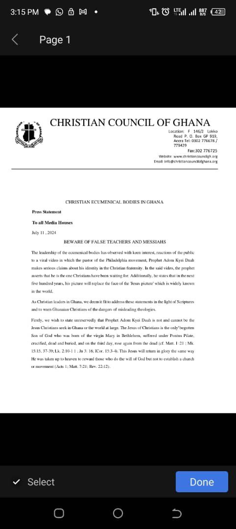 The Christian Council of Ghana stated, “Firstly, we wish to state unequivocally that Prophet Adom Kyei-Duah is not and cannot be the Jesus that Christians seek in Ghana or the world at large.”