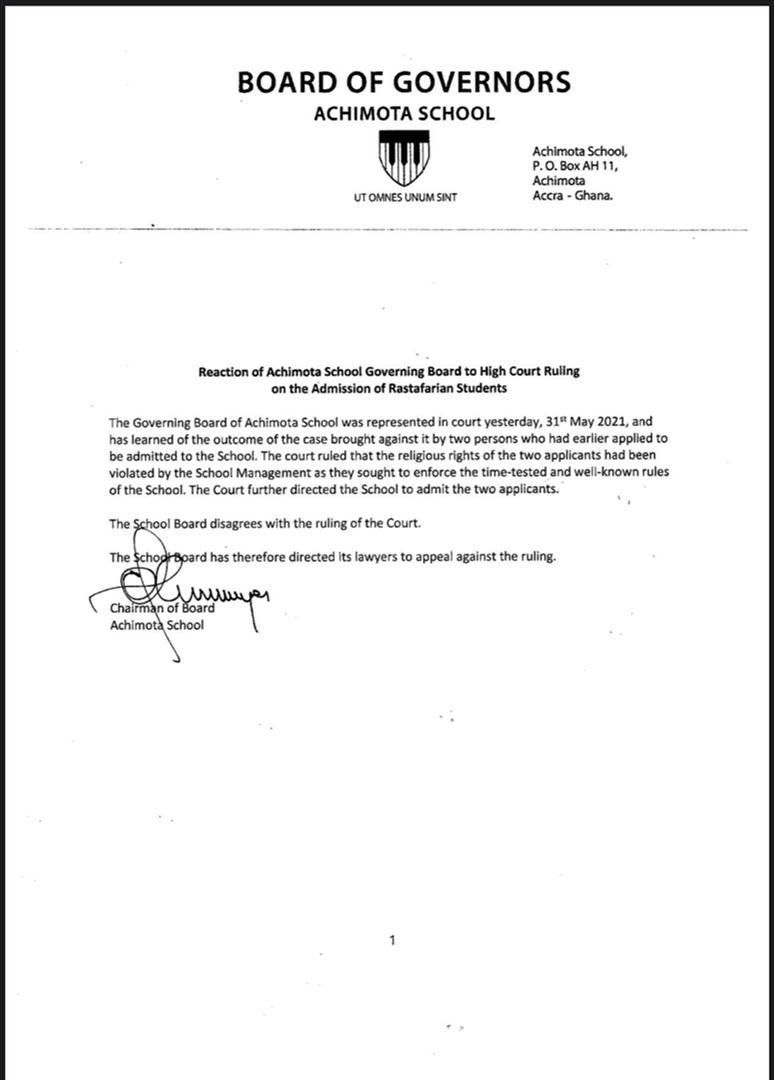 READ THE STATEMENT FROM ACHIMOTA SCHOOL BELOW