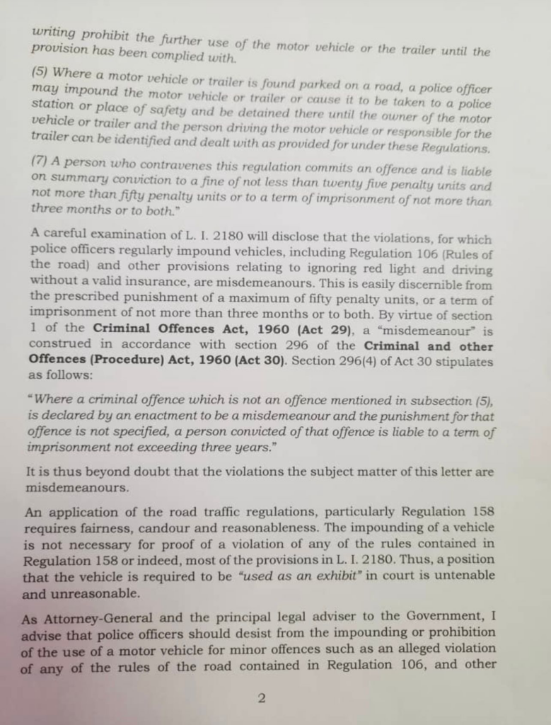 This directive, communicated to the Inspector General of Police, comes in response to mounting public complaints and concerns raised by legal experts and senior officials regarding the seizure of vehicles under the Road Traffic Regulations 2012 (L.I. 2180).