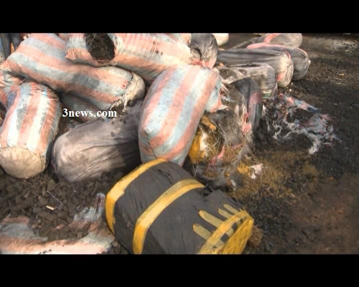 It was initially thought that the cargo truck was carrying charcoal but sacks of marijuana (weed) were found following a search.