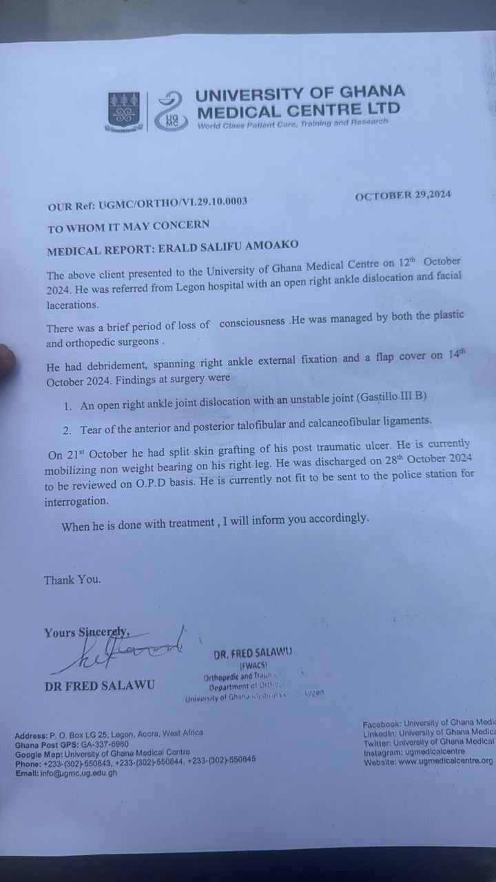 Nonetheless, officers of the Ghana Police are keeping an eye on the suspect until such time as the medical officer clears him as fit for an encounter with the law enforcement agency.