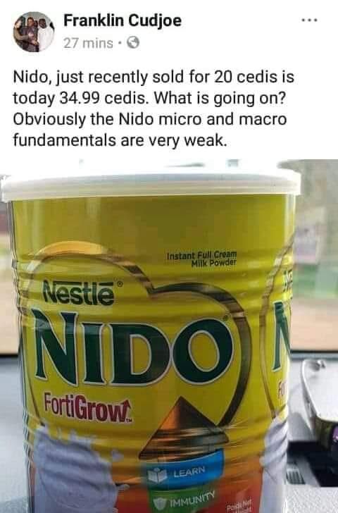 "Myself and Abdul-Hak Adebayor went to Malamata market to get NIDO. We bought it for 25 cedis. I am sure Franklin Cudjoe got his for 34 cedis because he is a Think Tank boss and we are ordinary citizens," another user posted.