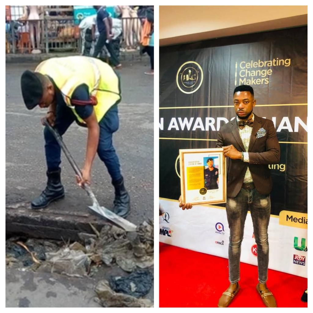 A police officer with the Greater Accra Regional Police Command, <a href="https://www.pulse.com.gh/news/local/ghanaian-police-officer-lance-corporal-simon-agbeko-receives-award-for-his/9znfyrl">Lance Corporal Simon Agbeko</a> noted for fixing damaged street lights and desilting choked gutters has received another humanitarian award for his good service in the country.