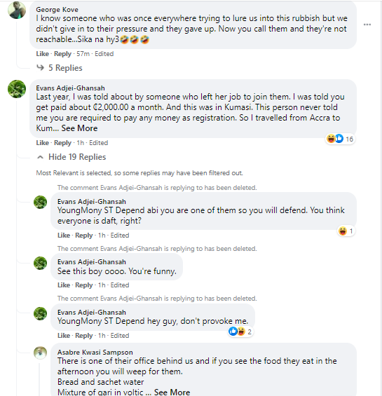 Another Ghanaian said "I know someone who was once everywhere trying to lure us into this rubbish but we didn't give in to their pressure and they gave up. Now you call them and they're not reachable...Sika na hy3."