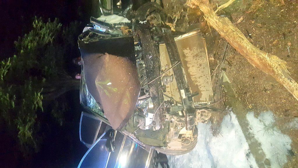 It adds that the driver of the vehicle was attempting to negotiate a sharp curve and run into a tree.