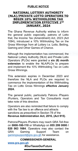 However the GRA and the government as part of ongoing efforts to diversify revenue sources and fund essential development projects by tapping into the income generated from lotto games, the GRA aims to bolster public finances and support initiatives that benefit the broader Ghanaian population.