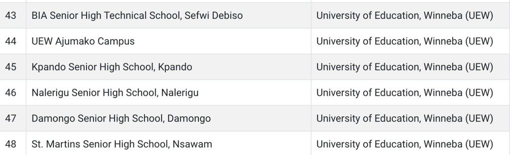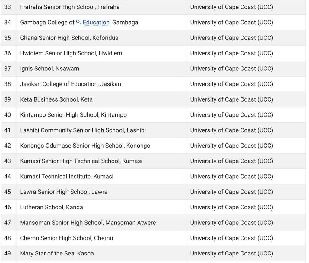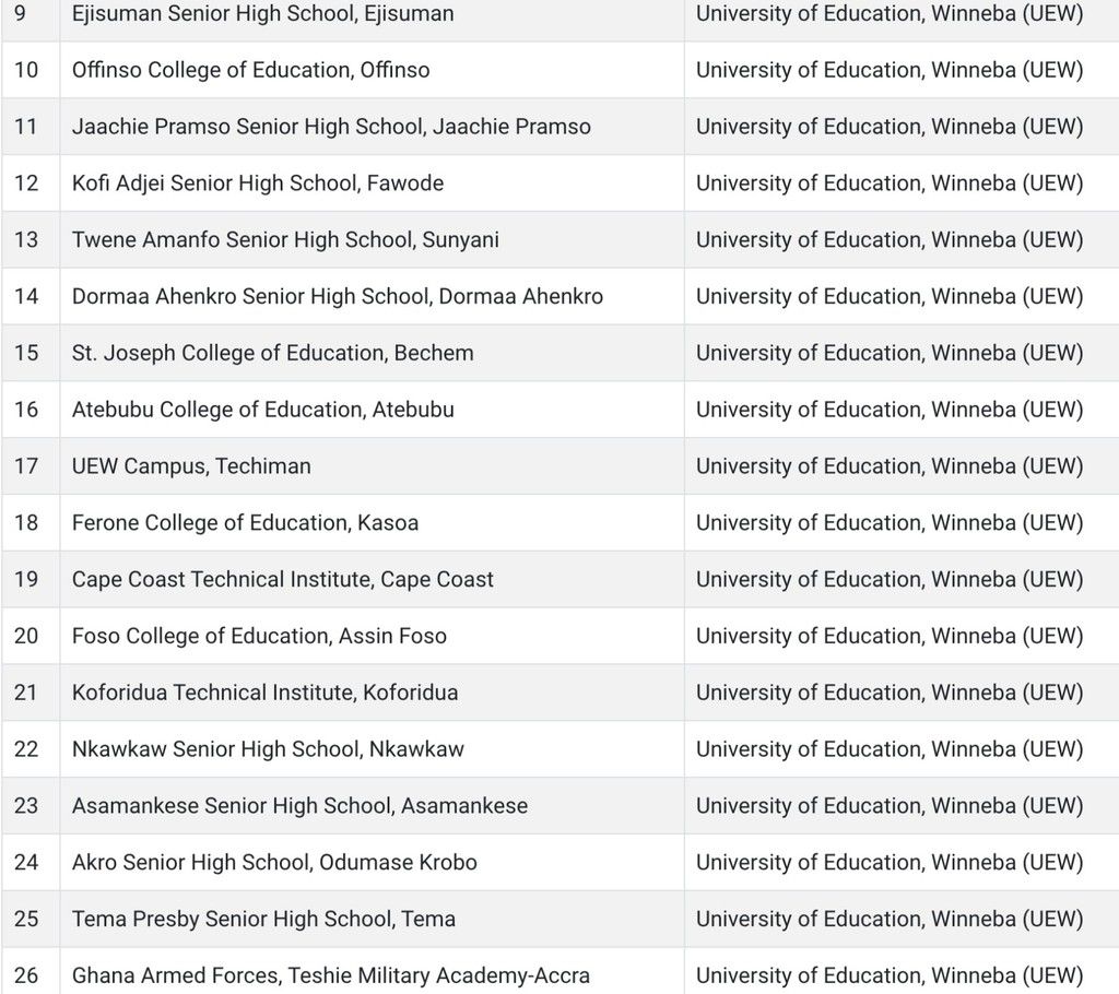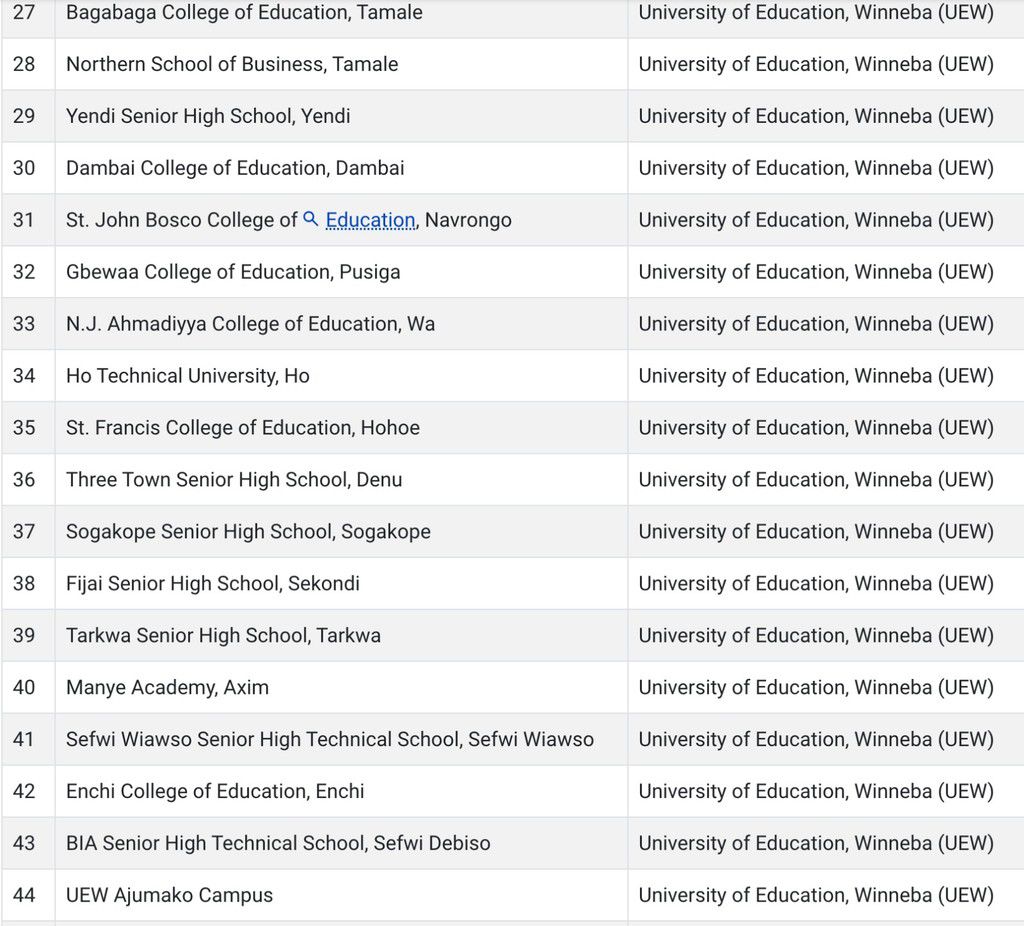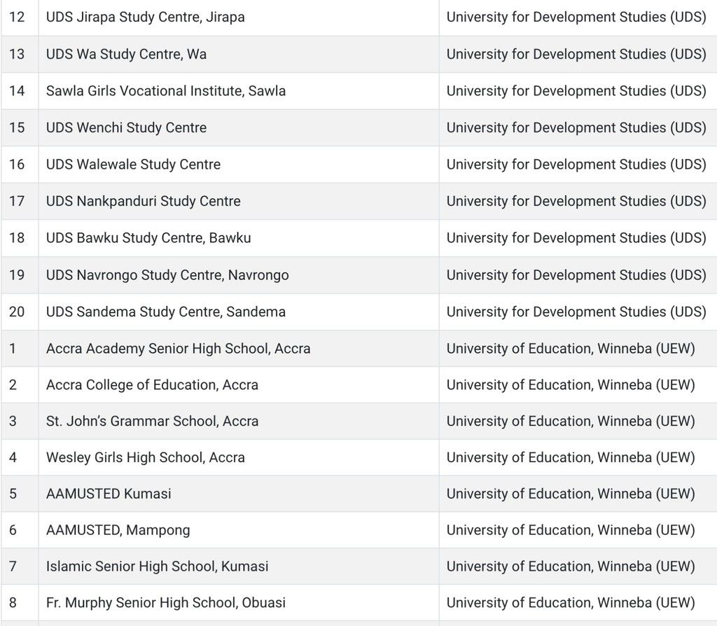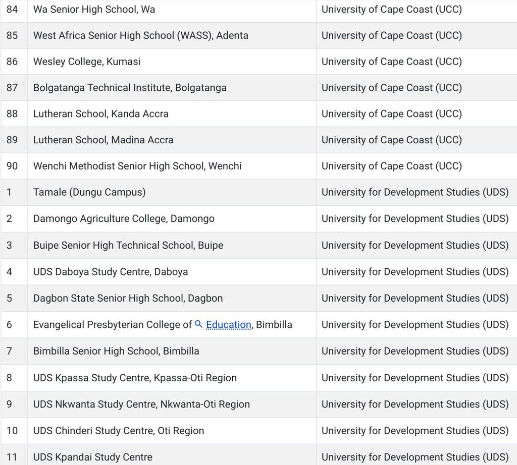 UCC has the highest number of 91 centres, followed by the UEW with 48 centres, while the UDS has 21 of such centres.