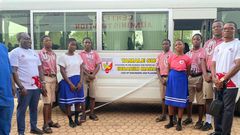 Receiving the Bus on behalf of the School, the Headmaster expressed his gratitude to Mr. Ibrahim Mahama for his continuous support to the school needs. “It’s a very good gesture and this will help ease large part of the transport challenges the school encounters sometimes especially the NSMQ team. He said, as an old student of the school, Mr. Ibrahim Mahama is also putting up a 1200 Ultra Modern dormitory for the school. When completed, it ll help solve the accommodation challenges students face on campus. He said, work on the project is progressing very well since work recommenced last September.