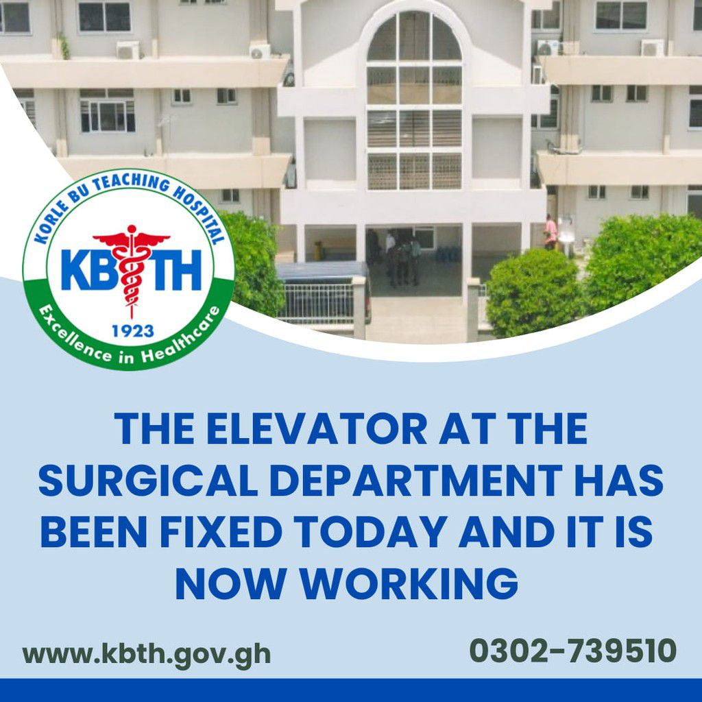 The repair work comes after the management of the Korle-Bu Teaching Hospital reportedly prevented Kwabena Mintah Akandoh, from inspecting the lifts in the hospital's Surgical Department.