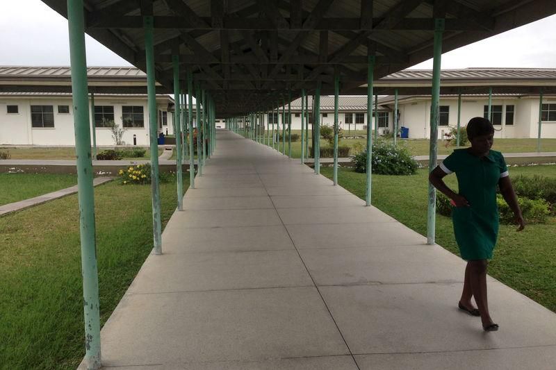 A lone nurse walks through Winneba Trauma and Specialist Hospital in Winneba, Ghana, August 20, 2015. Doctors in Ghana will suspend a three-week strike they called to press for better conditions of service, the Ghana Medical Association (GMA) said on August 21. The 125-bed hospital is almost empty because of a partial strike by doctors who have withdrawn emergency and out-patient services to press for better pay and conditions. Picture taken August 20, 2015. REUTERS/Matthew Mpoke Bigg