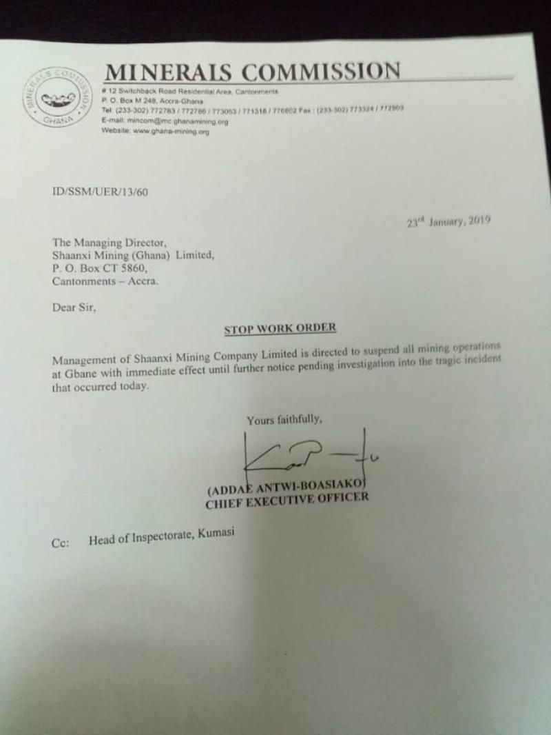 The National Minerals Commission has ordered mining firm, <a id="48de4e08-25c3-4551-ac13-e1226b190260" href="https://www.pulse.com.gh/news/local/11-dead-several-injured-in-shaanxi-galamsey-explosion/fl6xx9j">Shaanxi Company Limited</a>, to suspend all its operations.