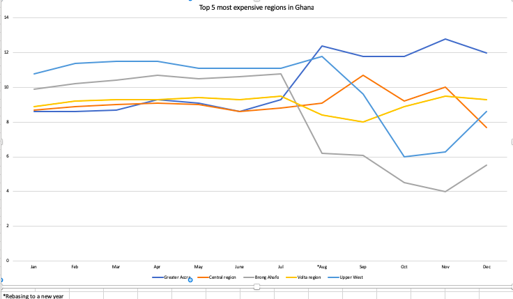 Meanwhile, the Ashanti region was one of the cheapest regions for consumers after coming in 8th with 5 percent average price movement of goods and services.