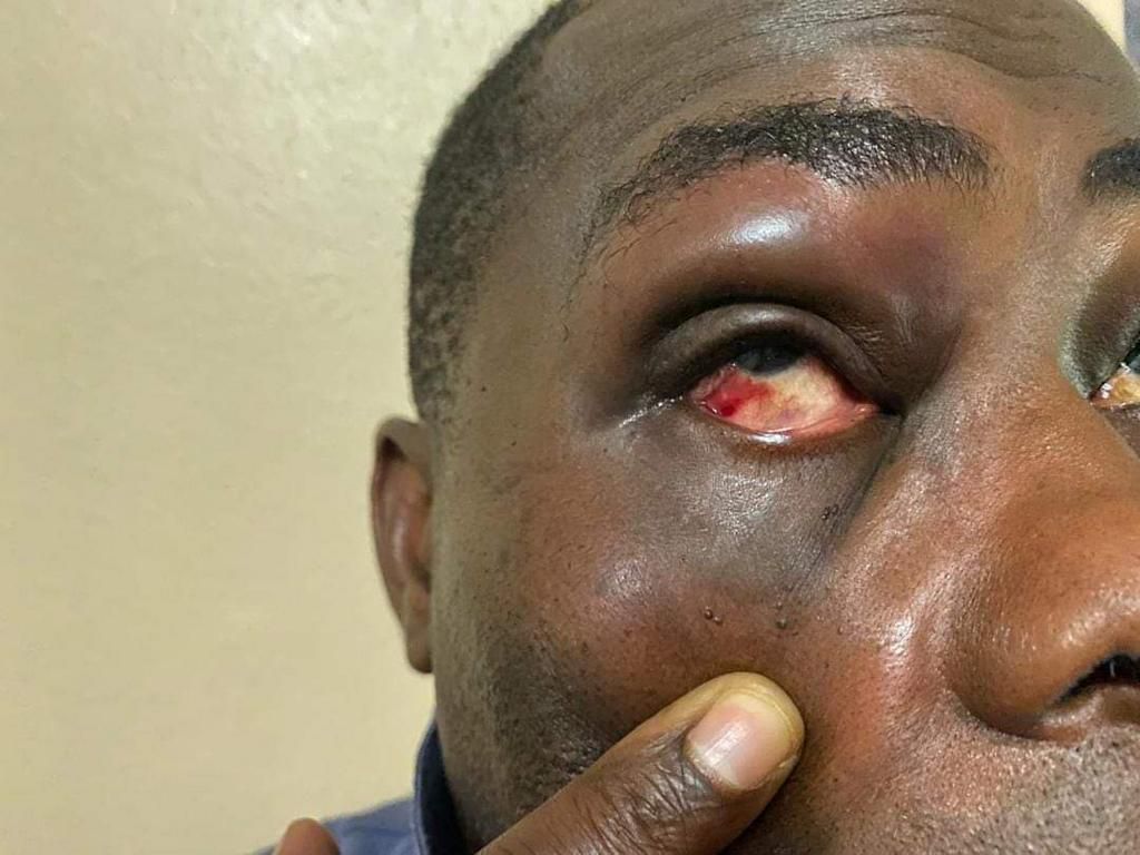 Charles Bissue with a bloodied eye