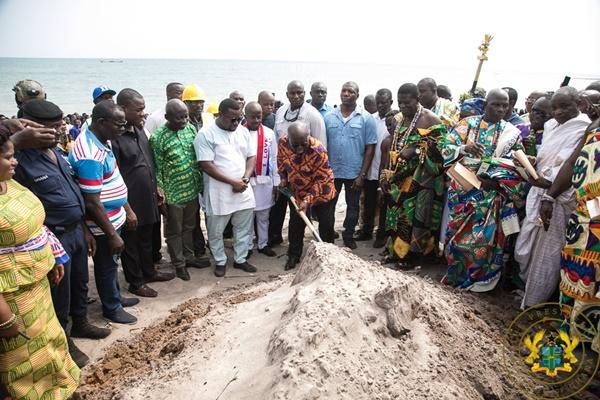 President Nana Addo Dankwa Akufo-Addo on Wednesday, 4th December 2019, has cut the sod for the commencement of work on the Ningo-Prampram Coastal Protection Project.