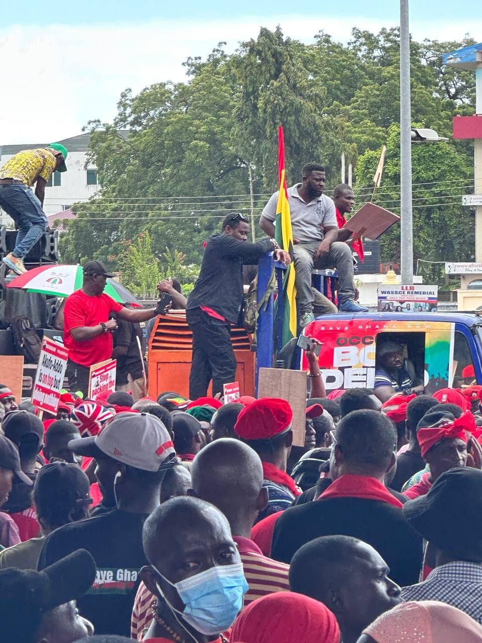 Dressed predominantly in somber black and striking red attire, with many sporting vibrant red caps, the demonstrators are unified in their call for the resignation of Dr. Ernest Addison, the governor of the Bank of Ghana, as well as his two deputies.