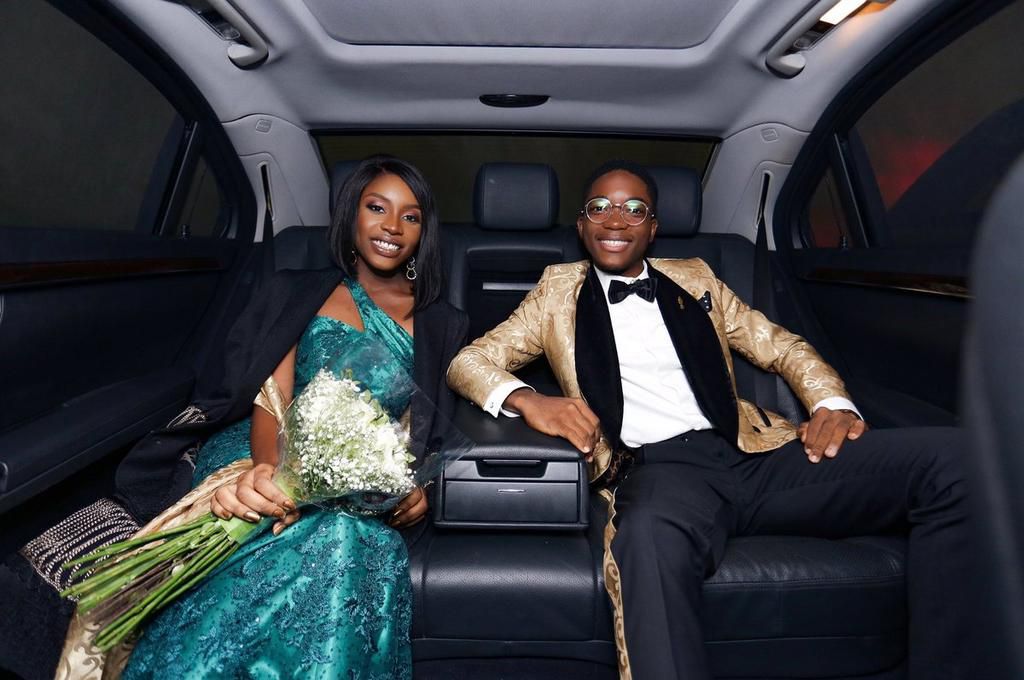 In the photos captioned by photographer Opeimu: “Inside the Benz with Ellis Brown and Afua Amoa @Prom2019”, a young lady and a young man are seen well dressed ready for their prom night.